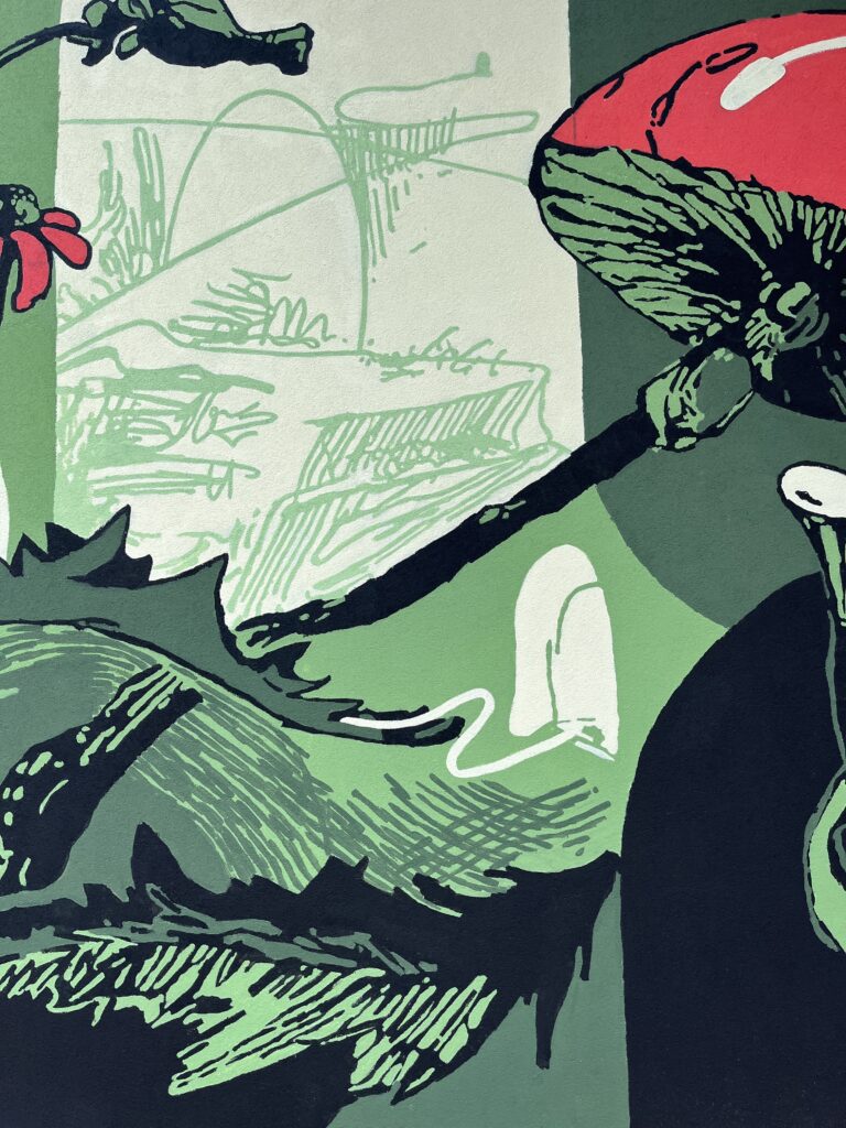 Projekt przedstawia botaniczny świat pełen ziół, roślin, kwiatów i owoców, w których można zgubić się wędrując ścieżkami, wpadając do dziur czy przechodząc przez tajemnicze przejścia. Mural powstał na ścianie budynku powstającego sklepu zielarskiego.